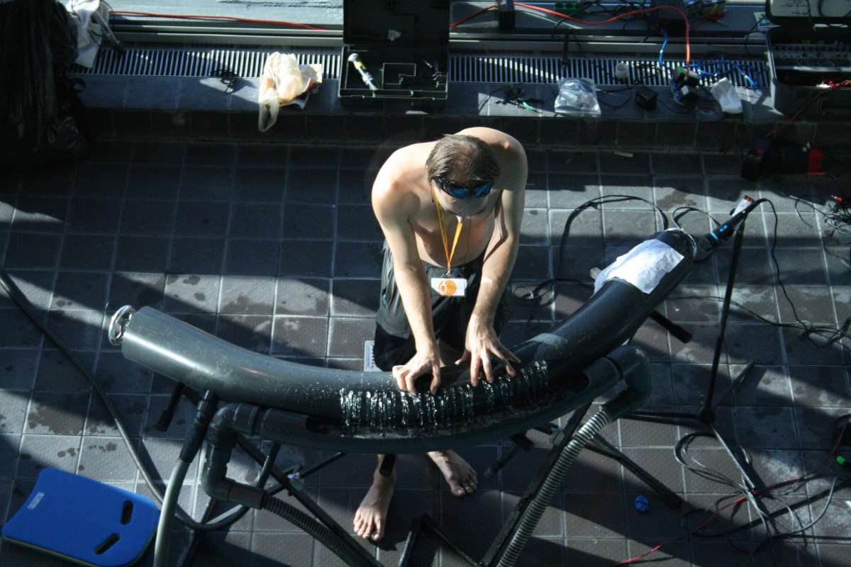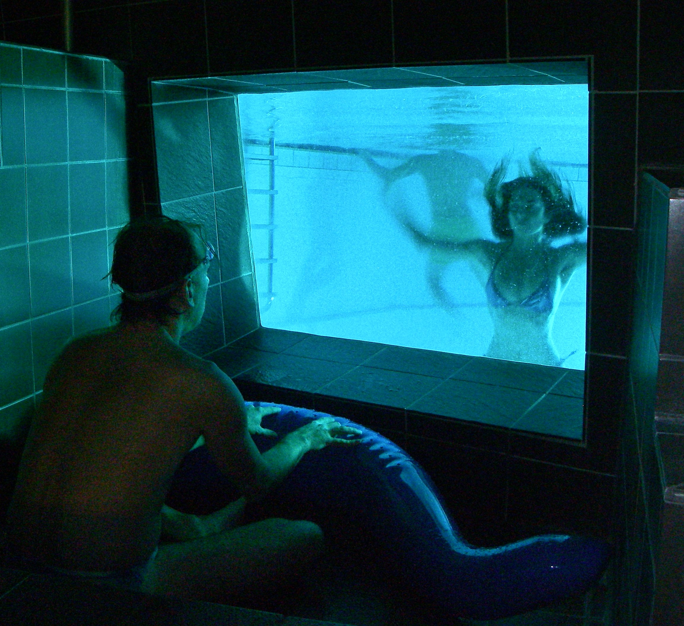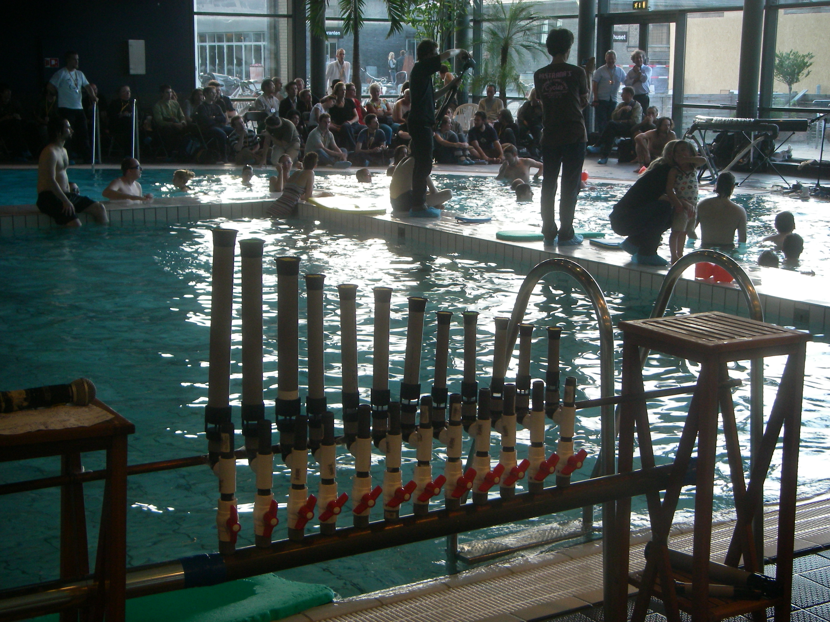 Some audience members immersed in water; some in air: