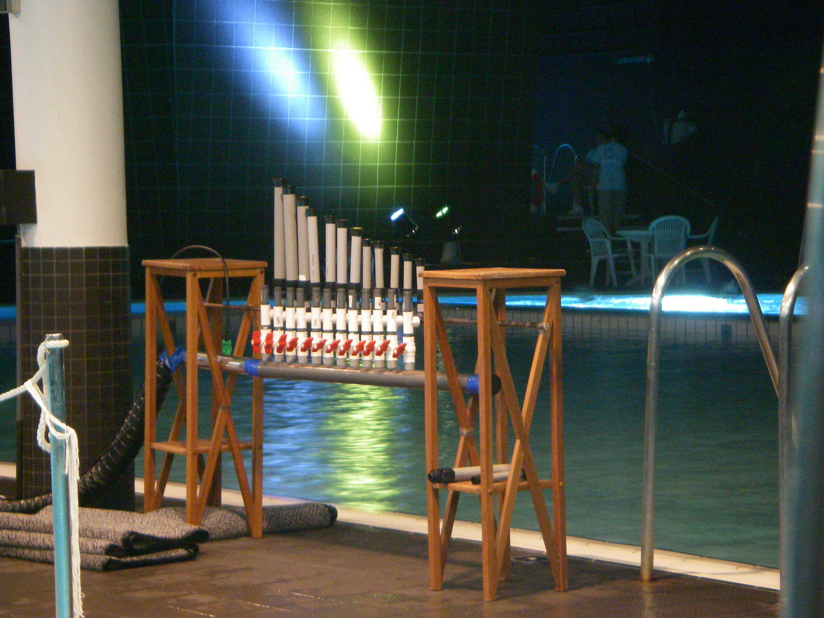 During the Tuesday evening concert the wind chimes were immersed in water.
