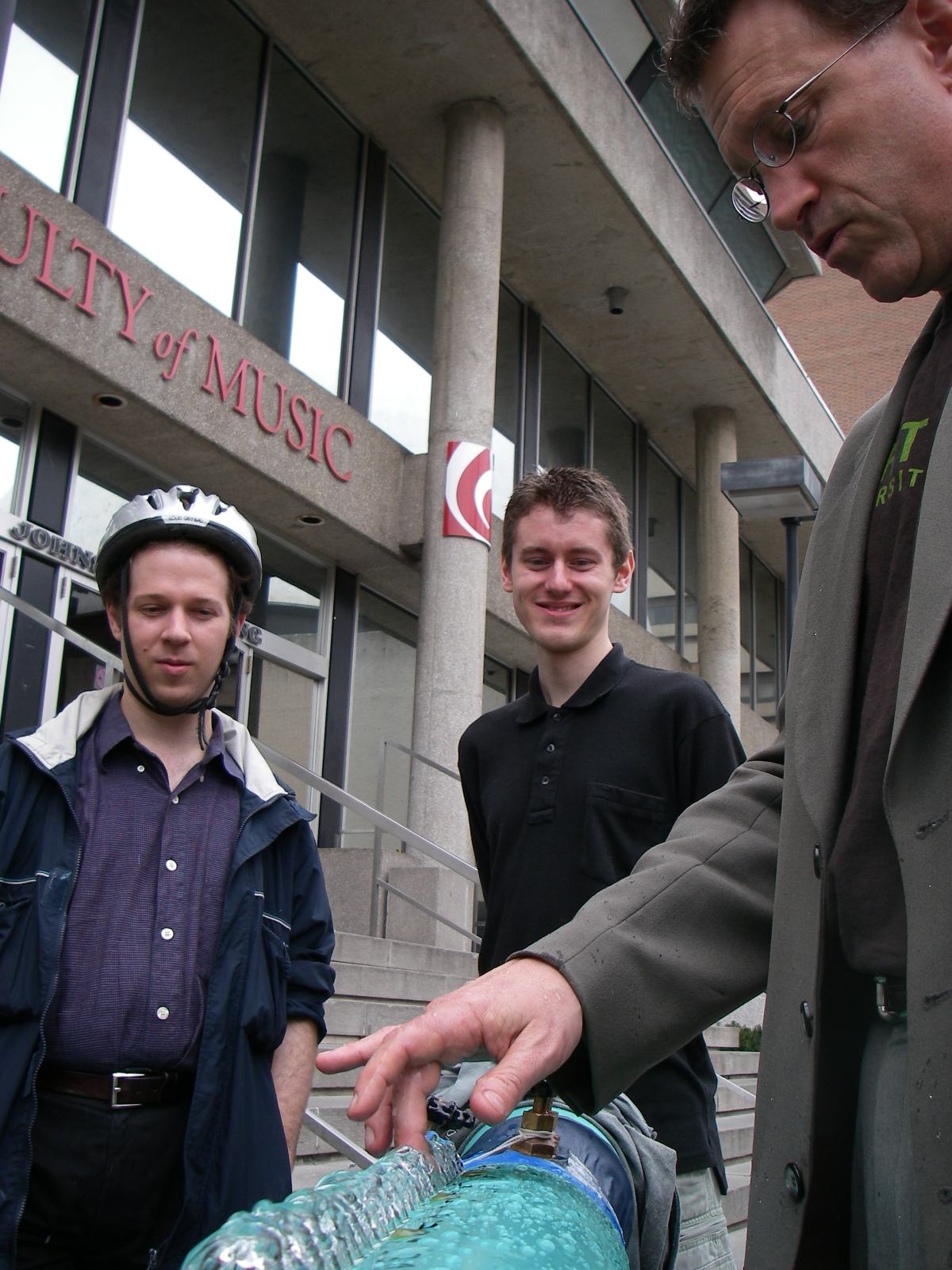 Thursday afternoon, 2006 May 4th, showing the Hydraulophone to Gage Averill and others at the Faculty of Music