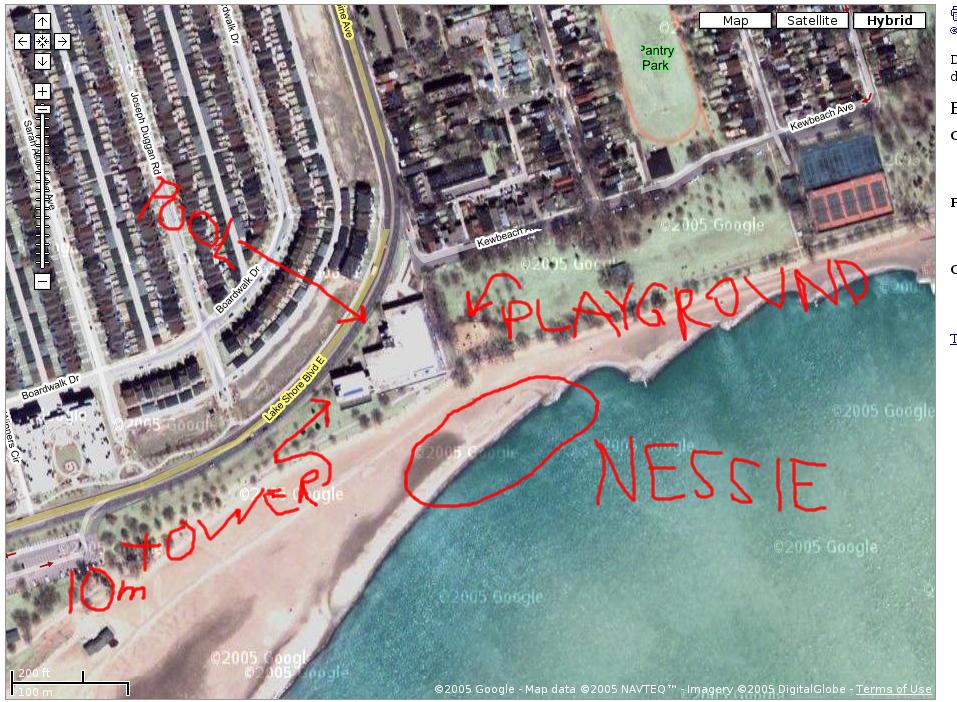 A week later, there was the last Nessie sighting of 2005 in Grange Park wading pool, Monday 2005 September 5th (Labour Day), the last day the pool was open: