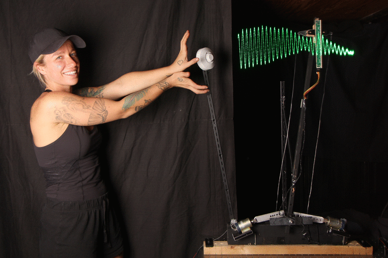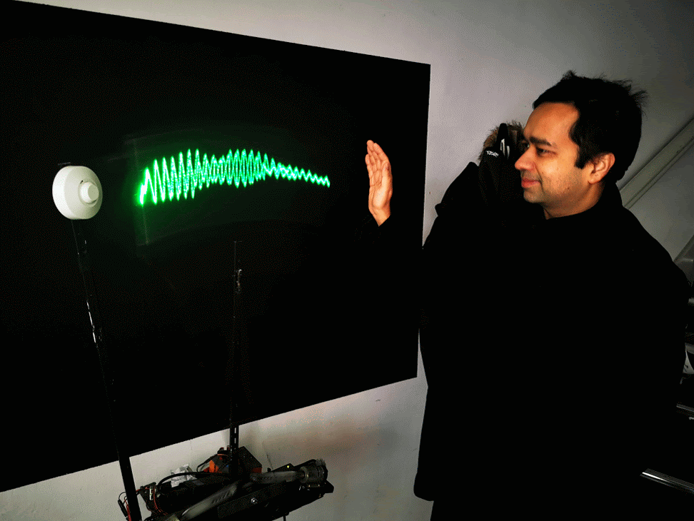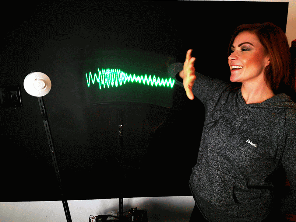 Measuring and seeing the radio waves from a microwave motion sensor, (as a "sitting wave", i.e. in coordinates where the speed of light is zero)